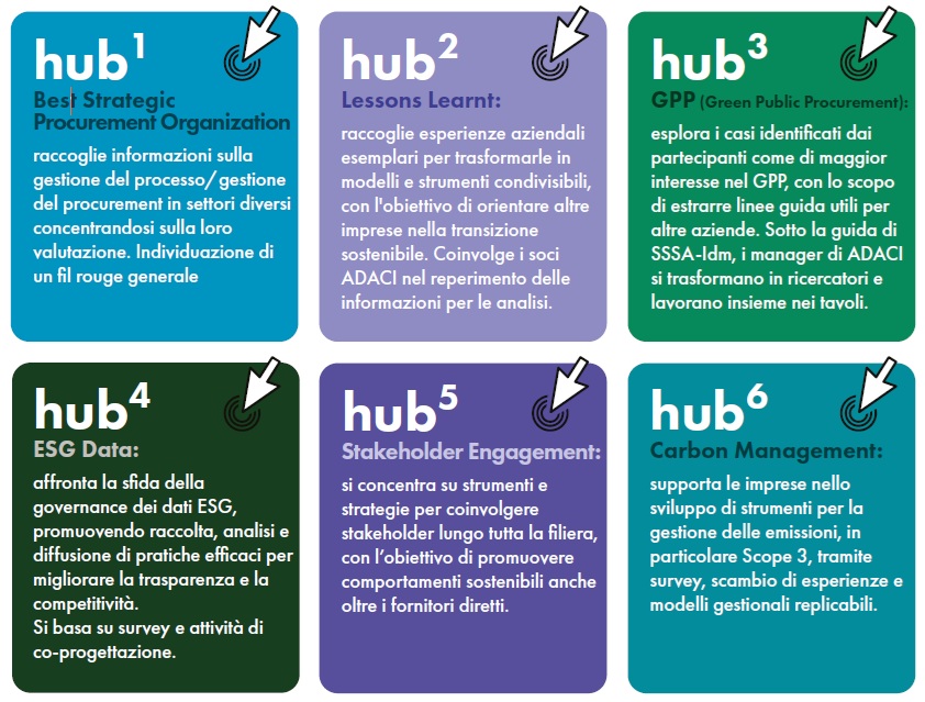 I Development Hub promossi da ADACI in collaborazione con il gruppo ERE della Scuola Superiore Sant’Anna mirano a generare conoscenza pratica e condivisa su vari temi legati alla sostenibilità aziendale, attraverso la collaborazione tra manager e ricercatori.
